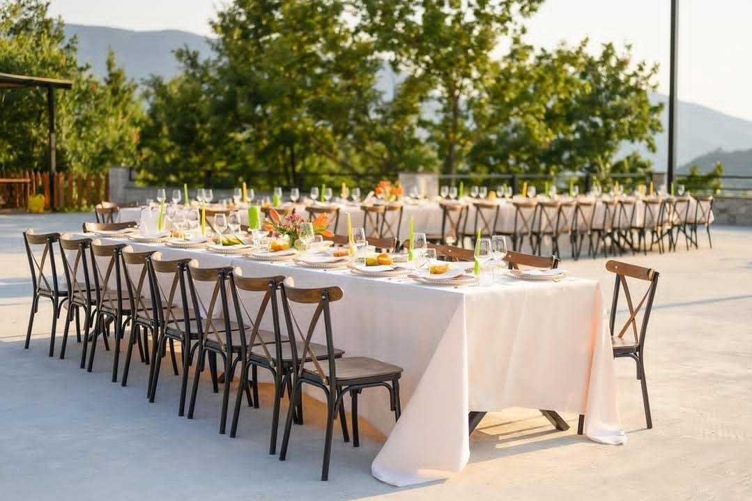 Muza Restorant & Agroturizem është destinacioni perfekt për evente të klasit të lartë pranë Tiranës. Një vend ku natyra, eleganca dhe gastronomia BIO krijojnë skenën ideale për çdo lloj feste — nga ditëlindjet intime deri te dasmat madhështore.