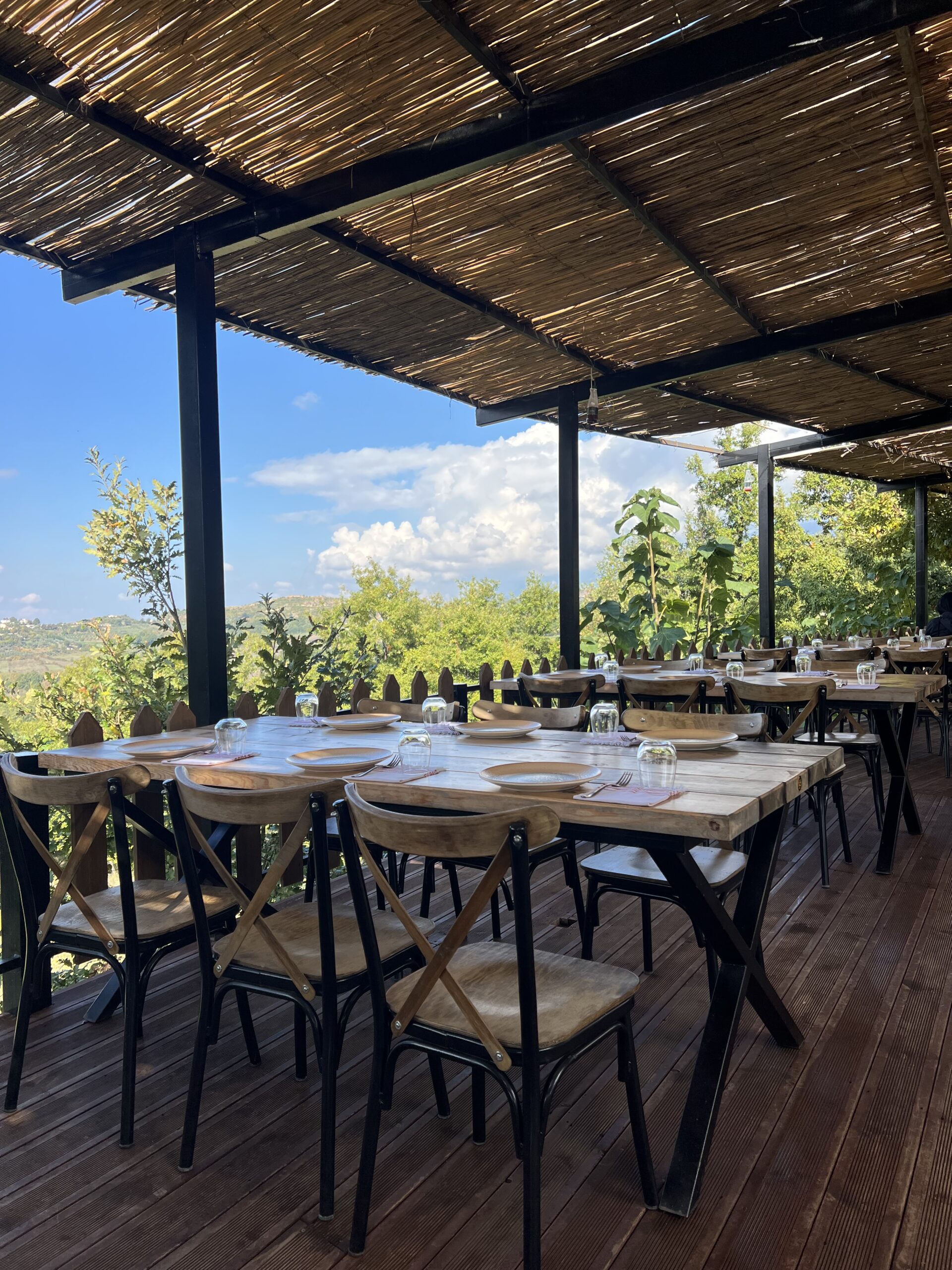E gjerë, e ndriçuar dhe e rrethuar nga natyra — vend ideal për welcome drink, kokteje, ceremonitë hyrëse dhe foto në natyrë.