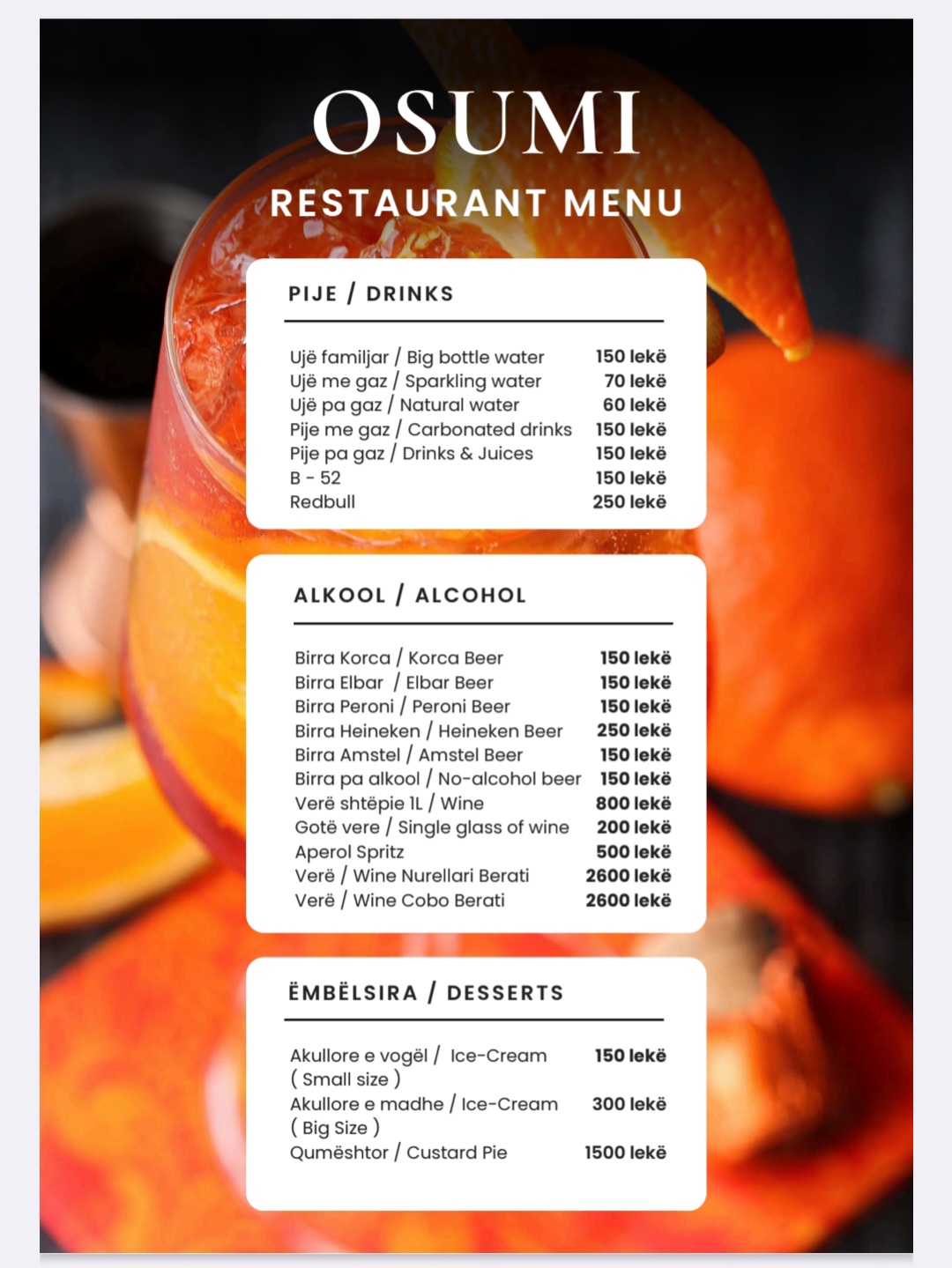 Bar Restorant Osumi ofron një ambient të përsosur për çdo lloj eventi. Nga drekat dhe darkat e përditshme, tek festimet e ditëlindjeve, darkat e punës, fejesat apo edhe dasmat, ne kujdesemi që çdo moment të jetë i veçantë.